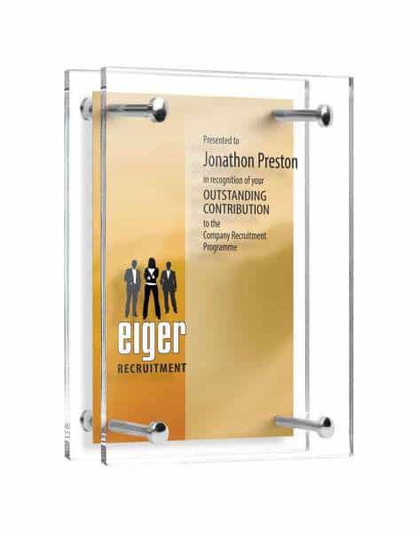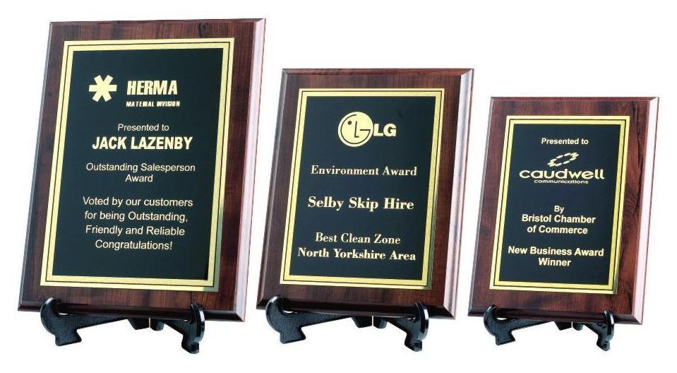 It soon becomes clear that all our award plaques can be made and designed to your own specifications. You may upload your choice of logo and your specific text as well. This is easy to do on the order page for a specific item. The detailing of each bespoke wall plaque award is exceptional. Full colour logos are possible in many cases. You are able to choose between colour printing and engraving, depending on the specific award and finish you opt for. If you have any questions or enquiries, do get in touch. We would be happy to resolve any queries you may have.