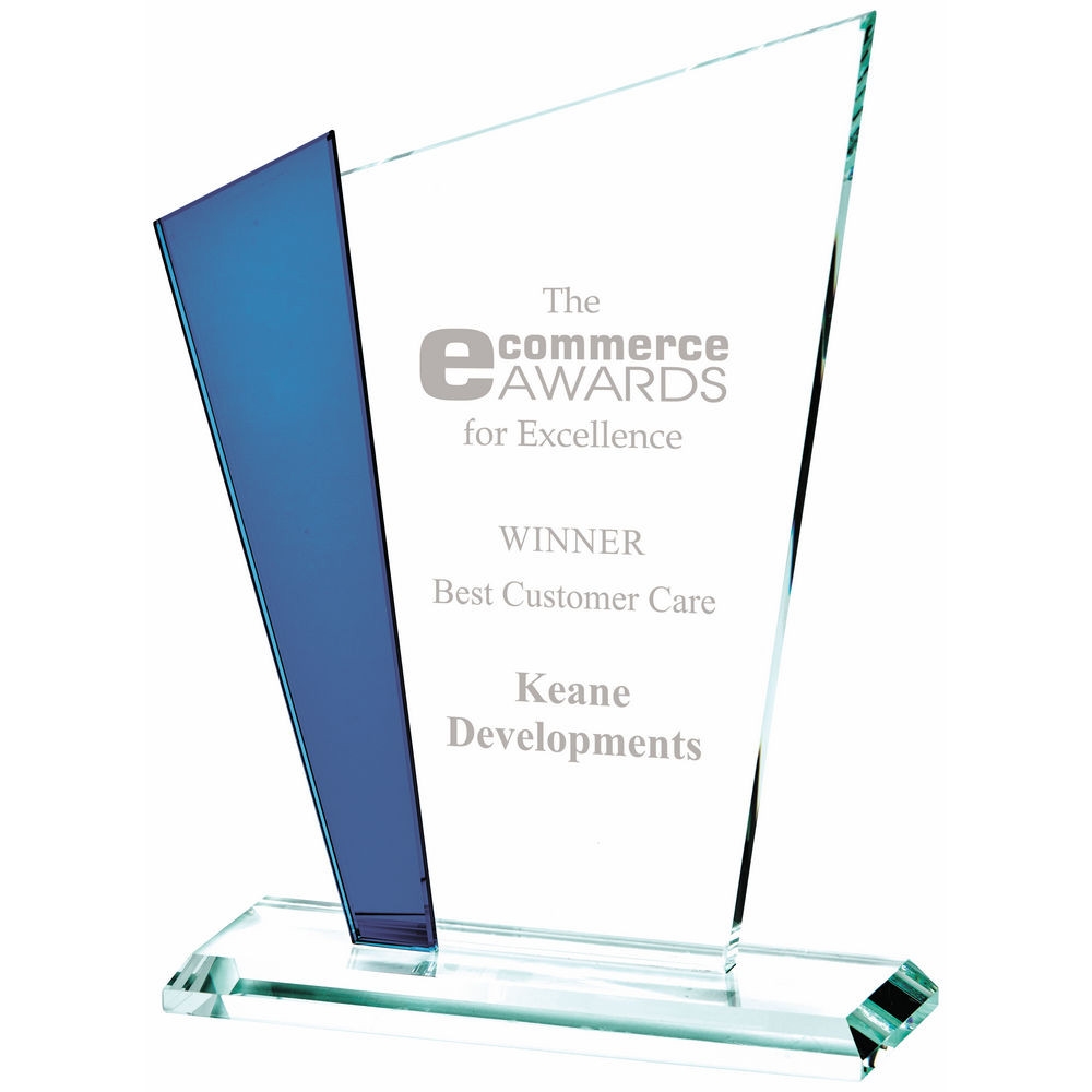 GlassEngraving or Colour PrintingEst. Delivery Time 5 daysPrice range: £31.75 through £38.75VIEW PRODUCTClear Glass Pointed Award with Blue Panel