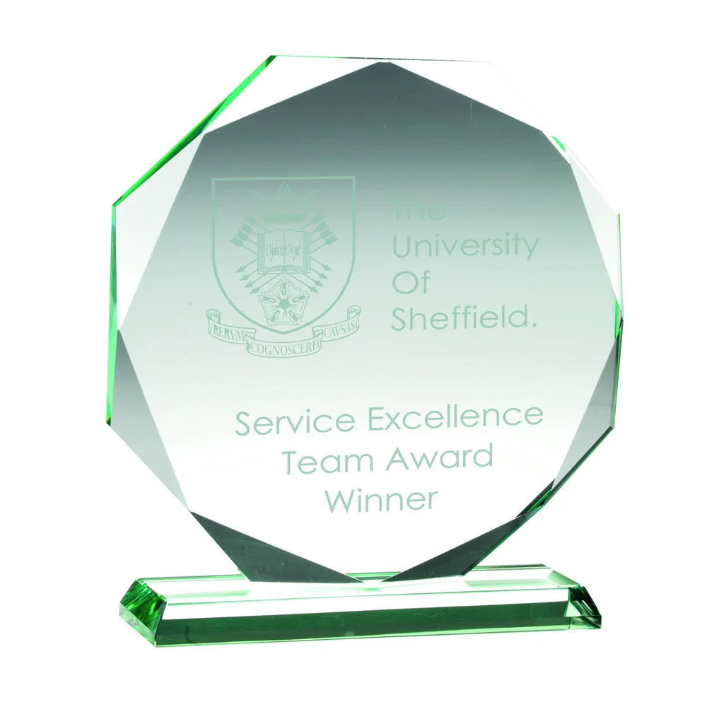 GlassEngraving or Colour PrintingEst. Delivery Time 5 daysPrice range: £34.25 through £43.25VIEW PRODUCTJade Glass Octagon Award
