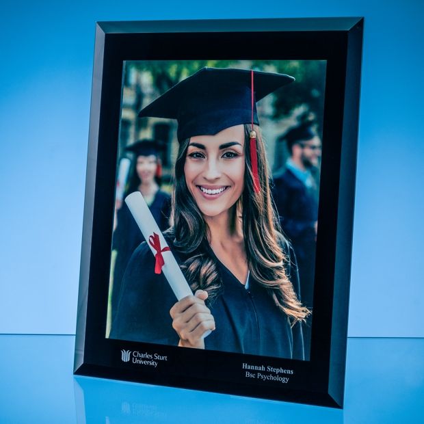 This Black Surround Glass Frame for A4 Photo or Certificate can be engraved to your specifications and comes in a presentation box.