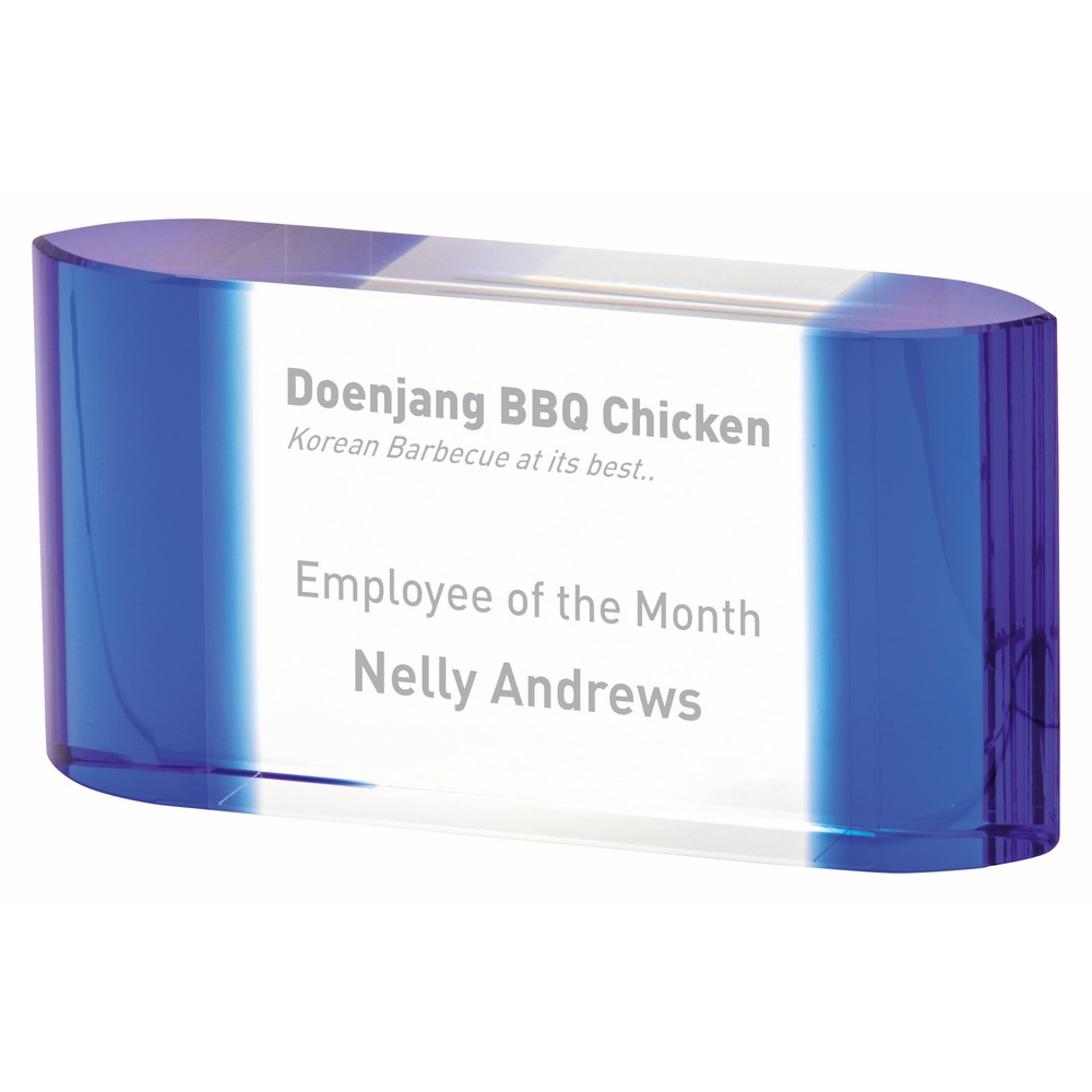 This Blue Clear Glass Award can be customised with engraving and comes in a presentation box.