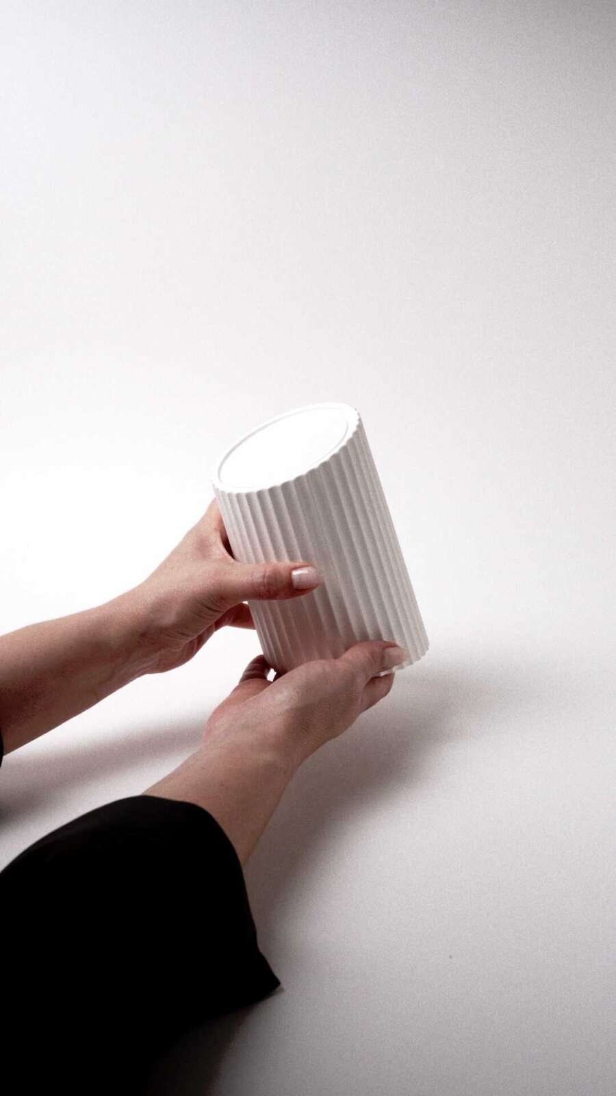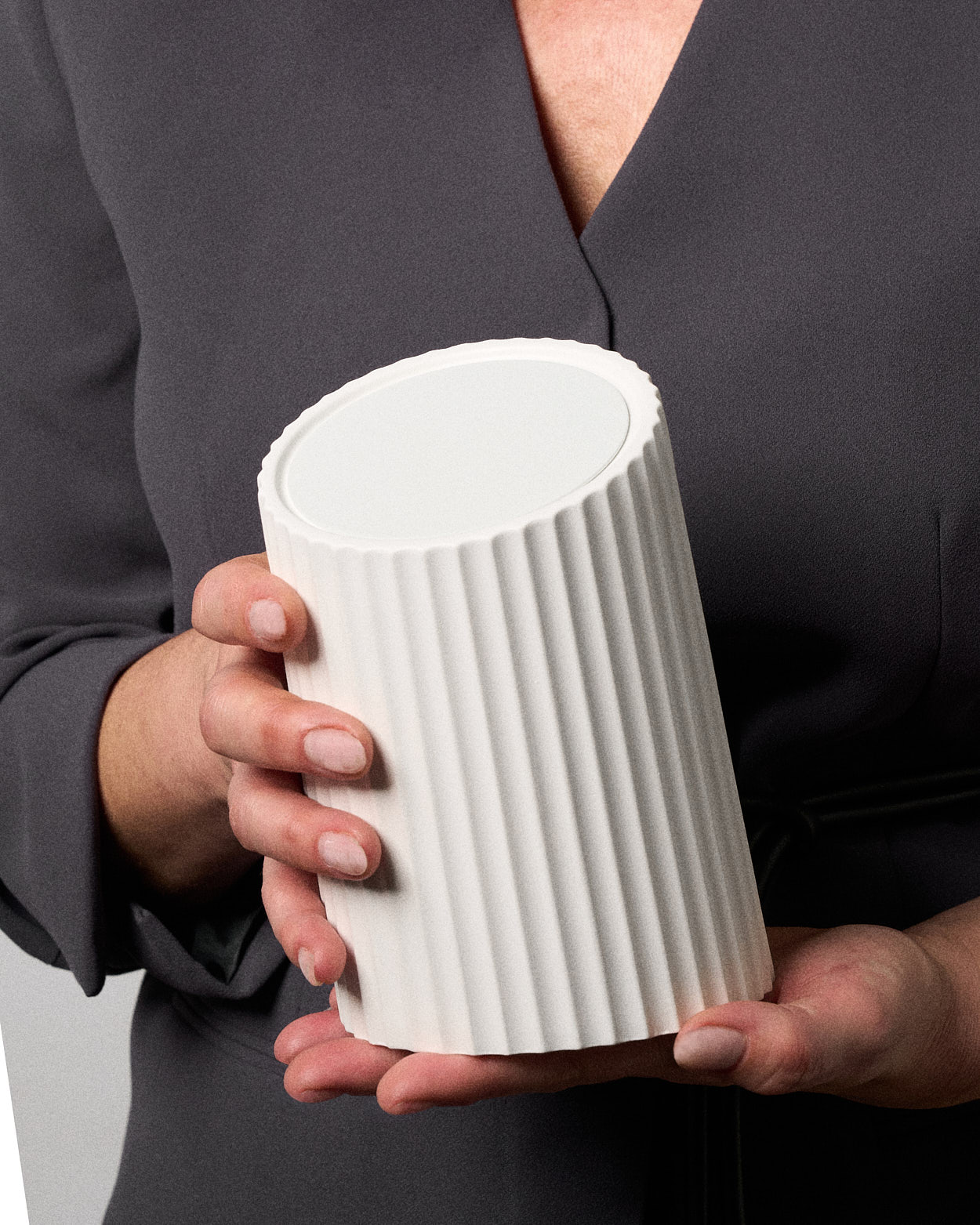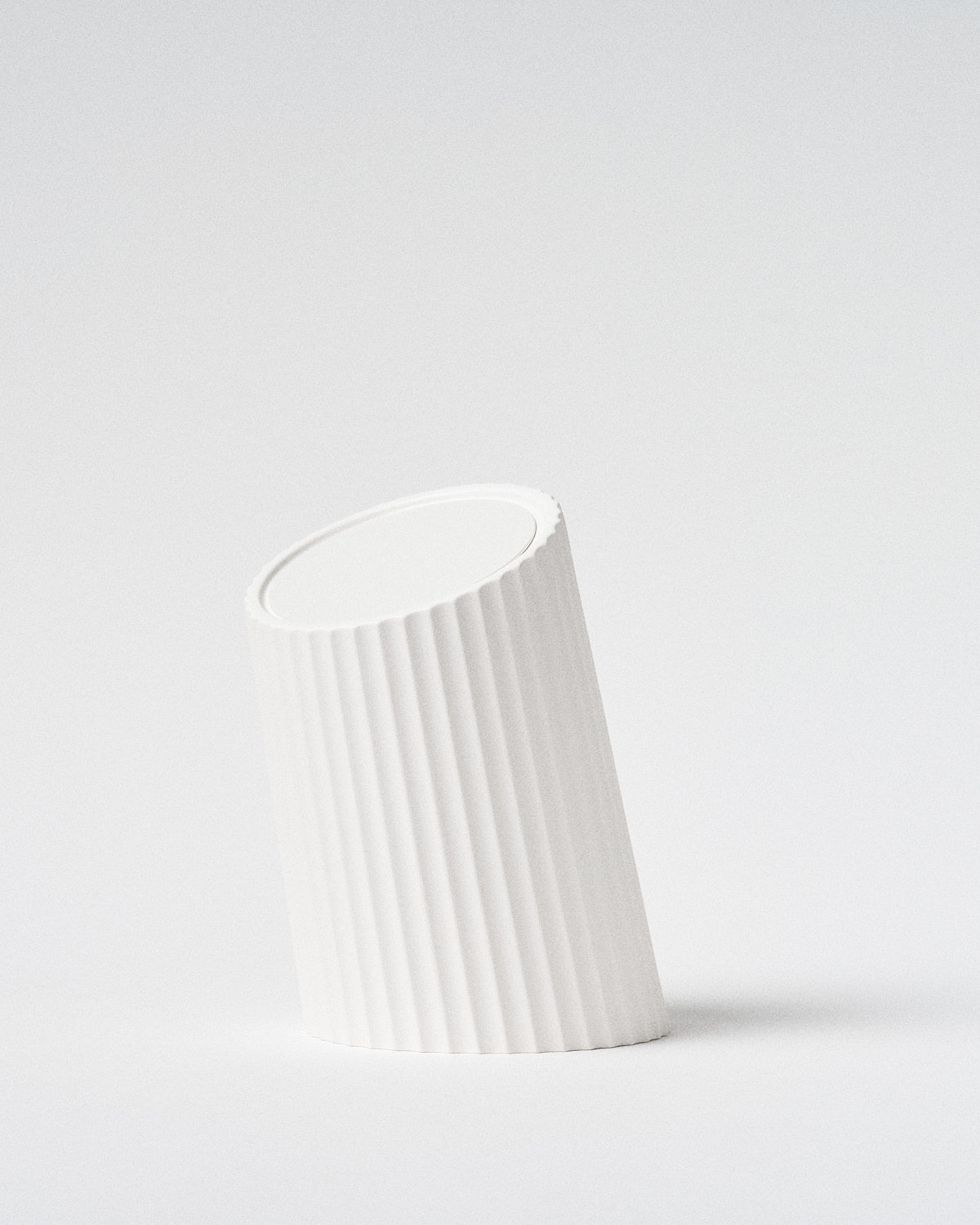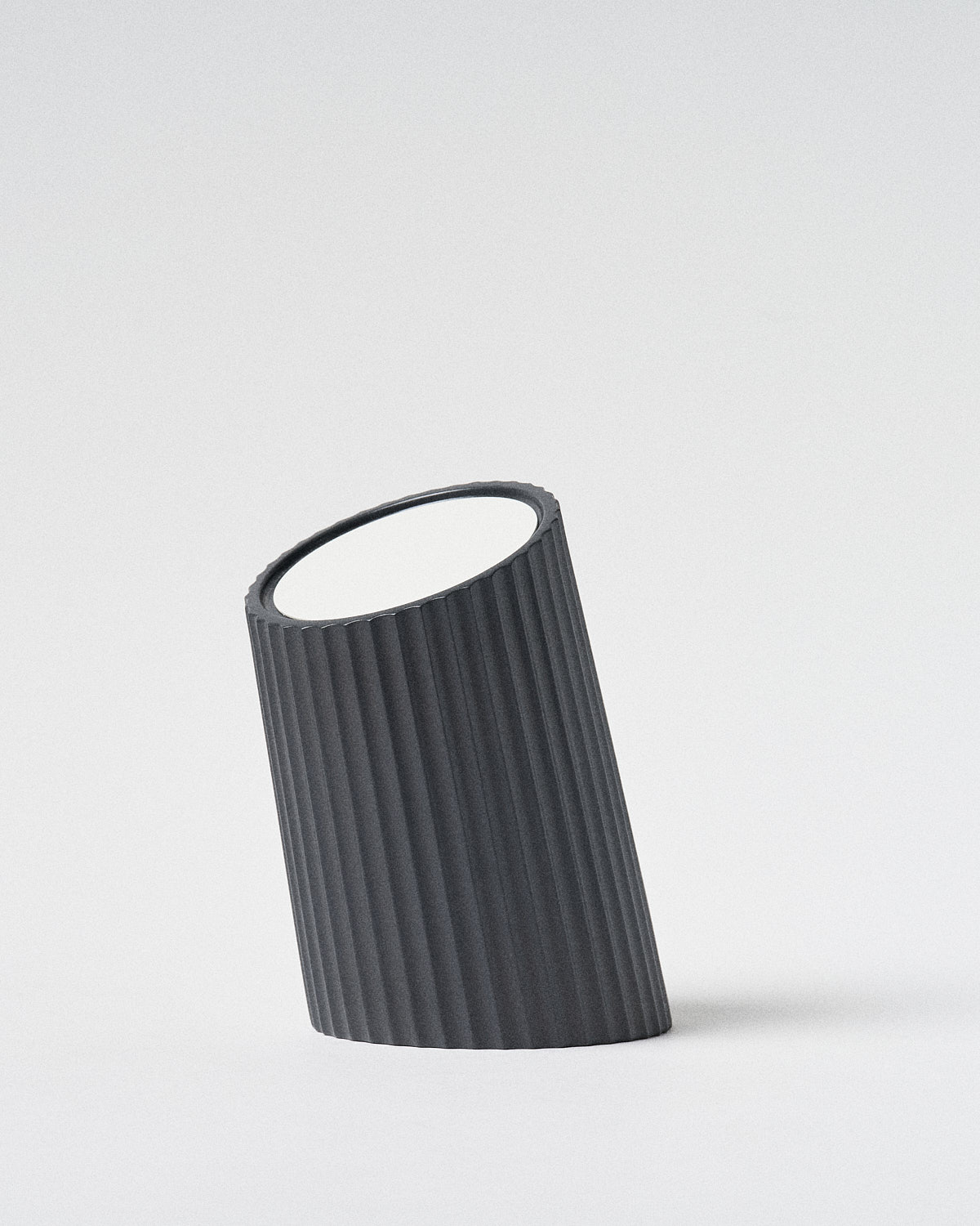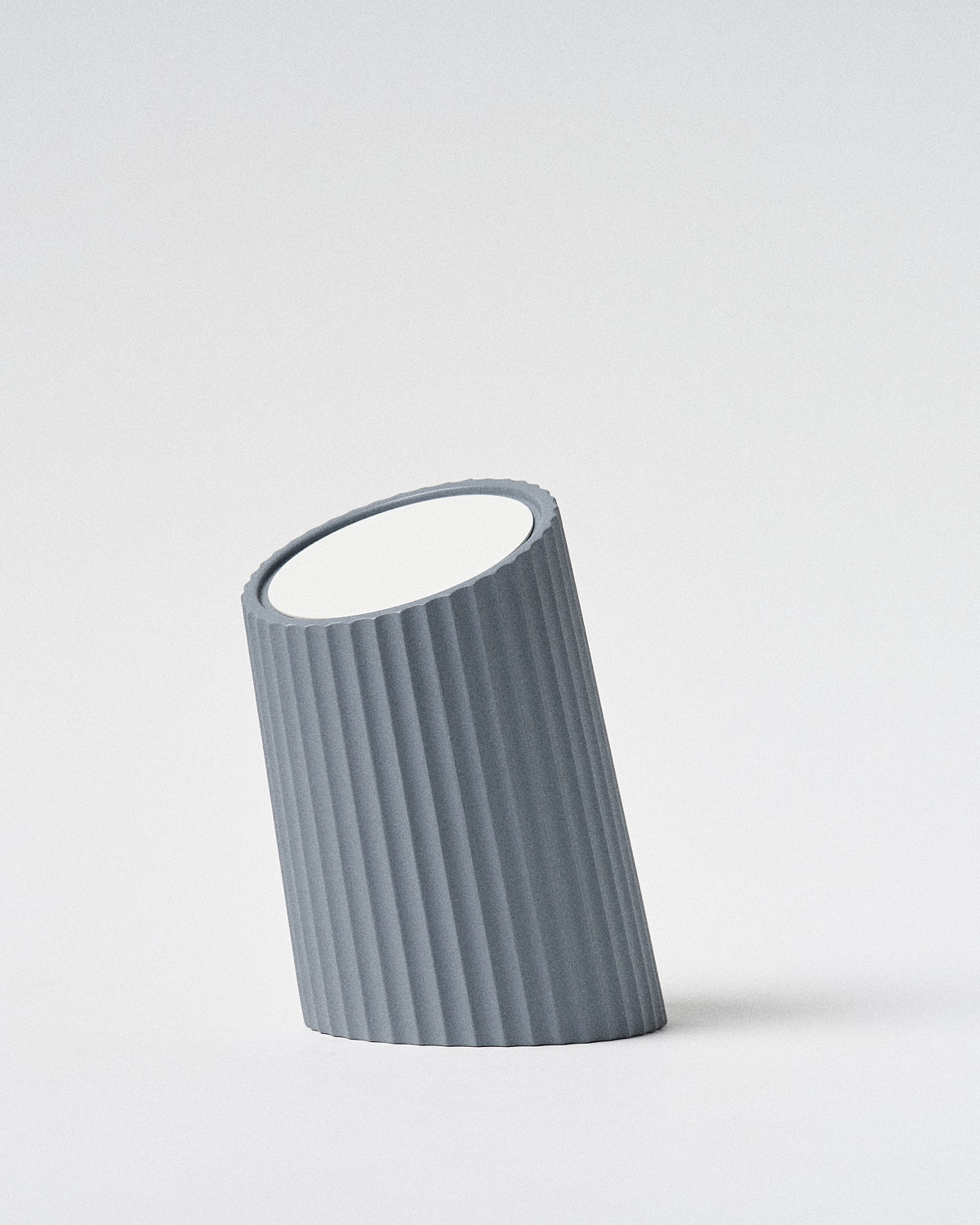Available in White, Grey, or Black, each totem is accented with a recycled steel plate and features a smooth, sculptural form that celebrates both craftsmanship and sustainability.