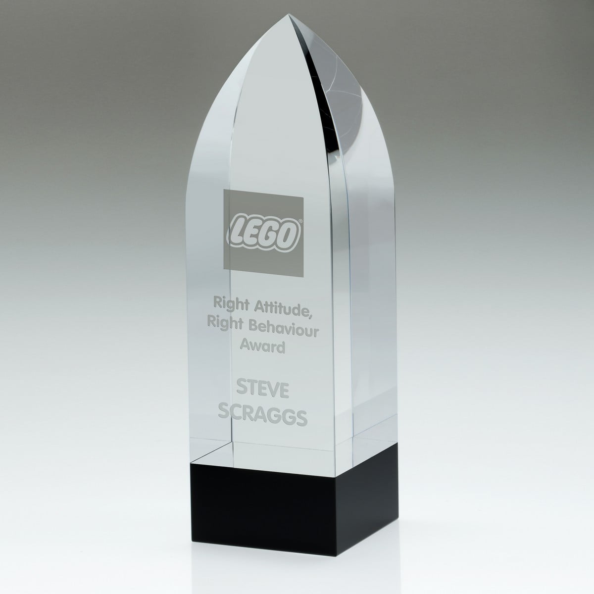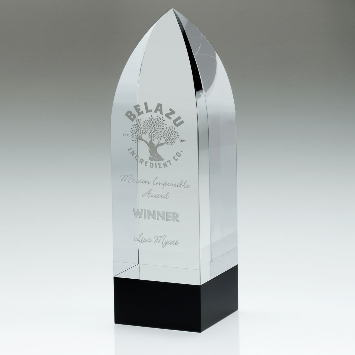 Clear/ Black Pointed Column comes in 3 sizes, comes in a presentation box and can be engraved to your specifications.