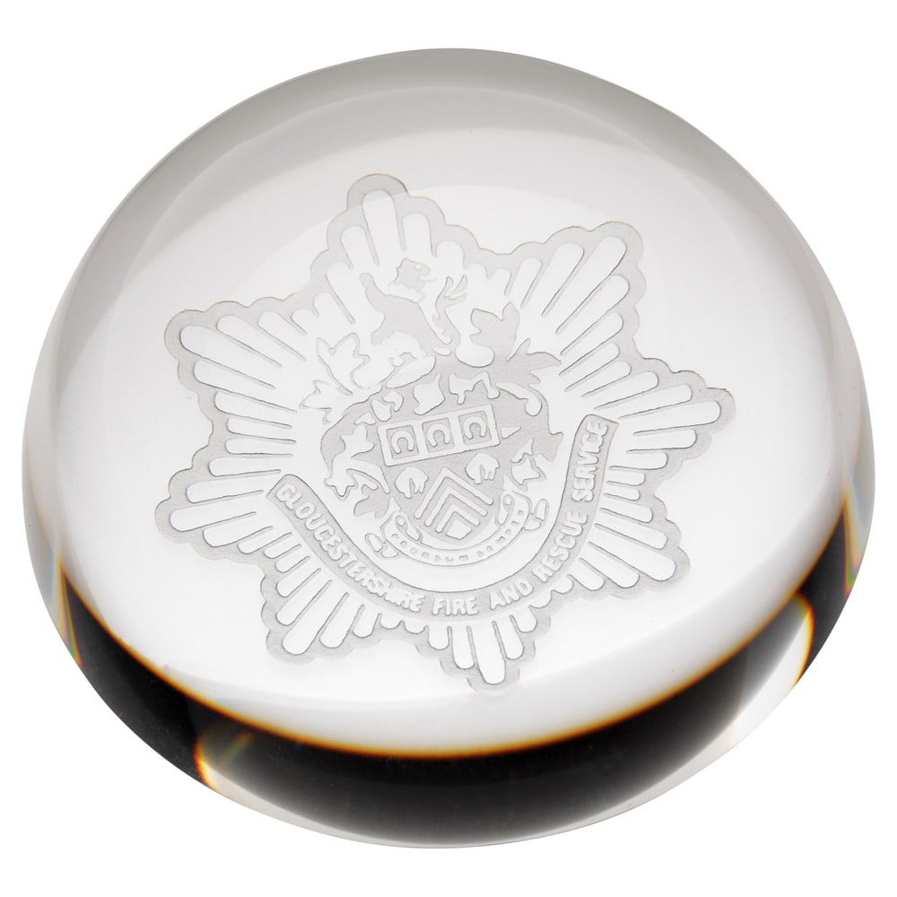 This Clear Glass Domed Paperweight Award can be engraved to you specifications.