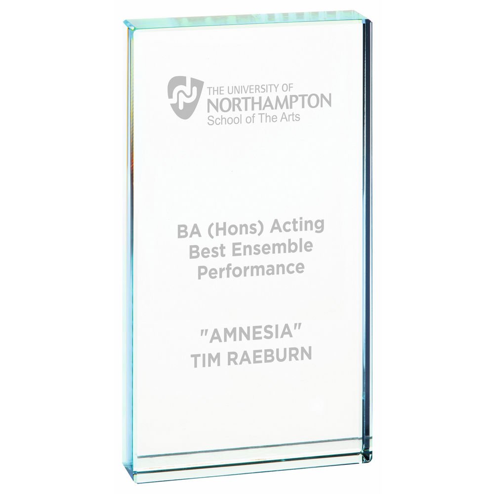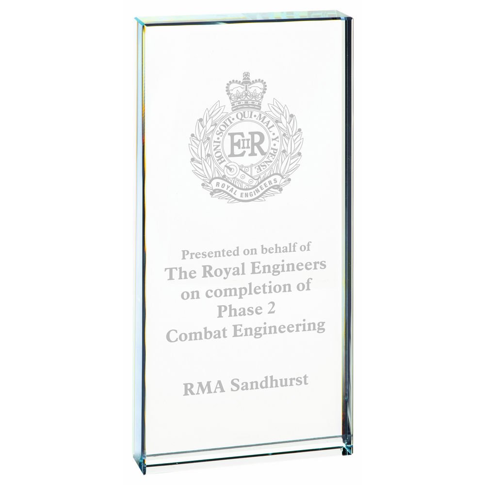 This Clear Glass Rectangular Stand comes in a presentation box and is available in three different sizes. It can be engraved to your specifications – perfect for a whole range of different events and achievements!