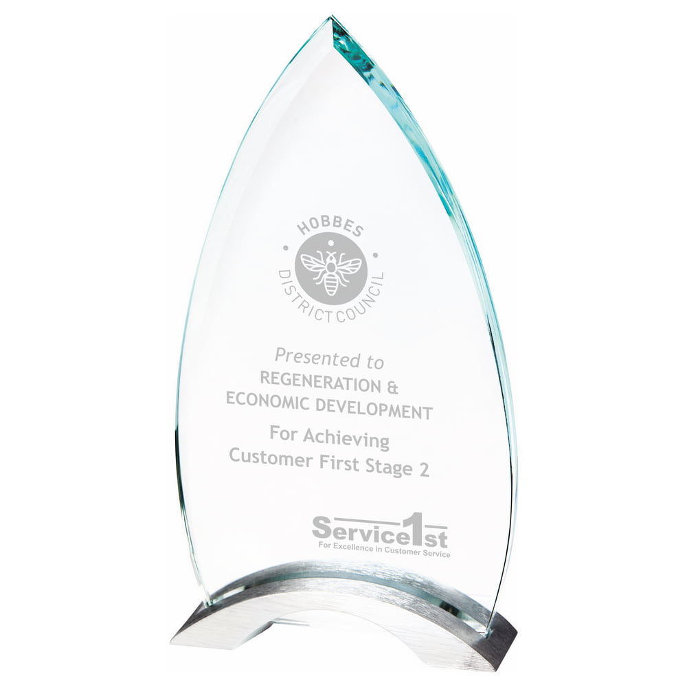 This Clear with Metal Base Award can be engraved to your specifications.