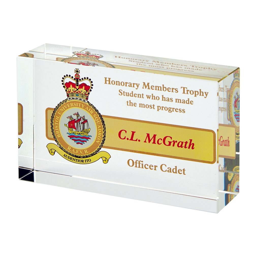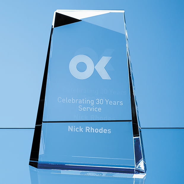The award also has some contrast from the cobalt blue base.  The large front surface of the award provides a good area for any personalisation details to be engraved.