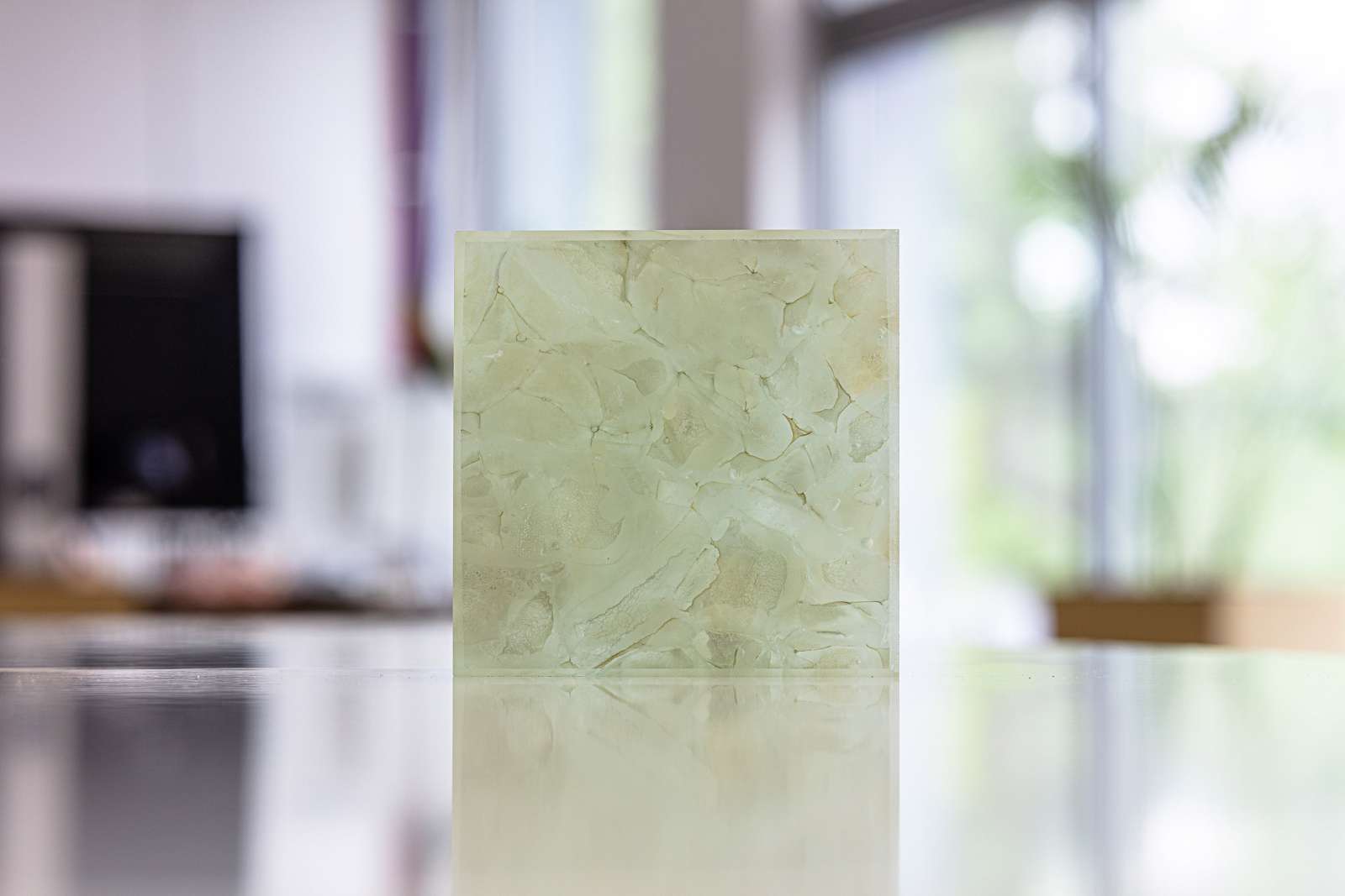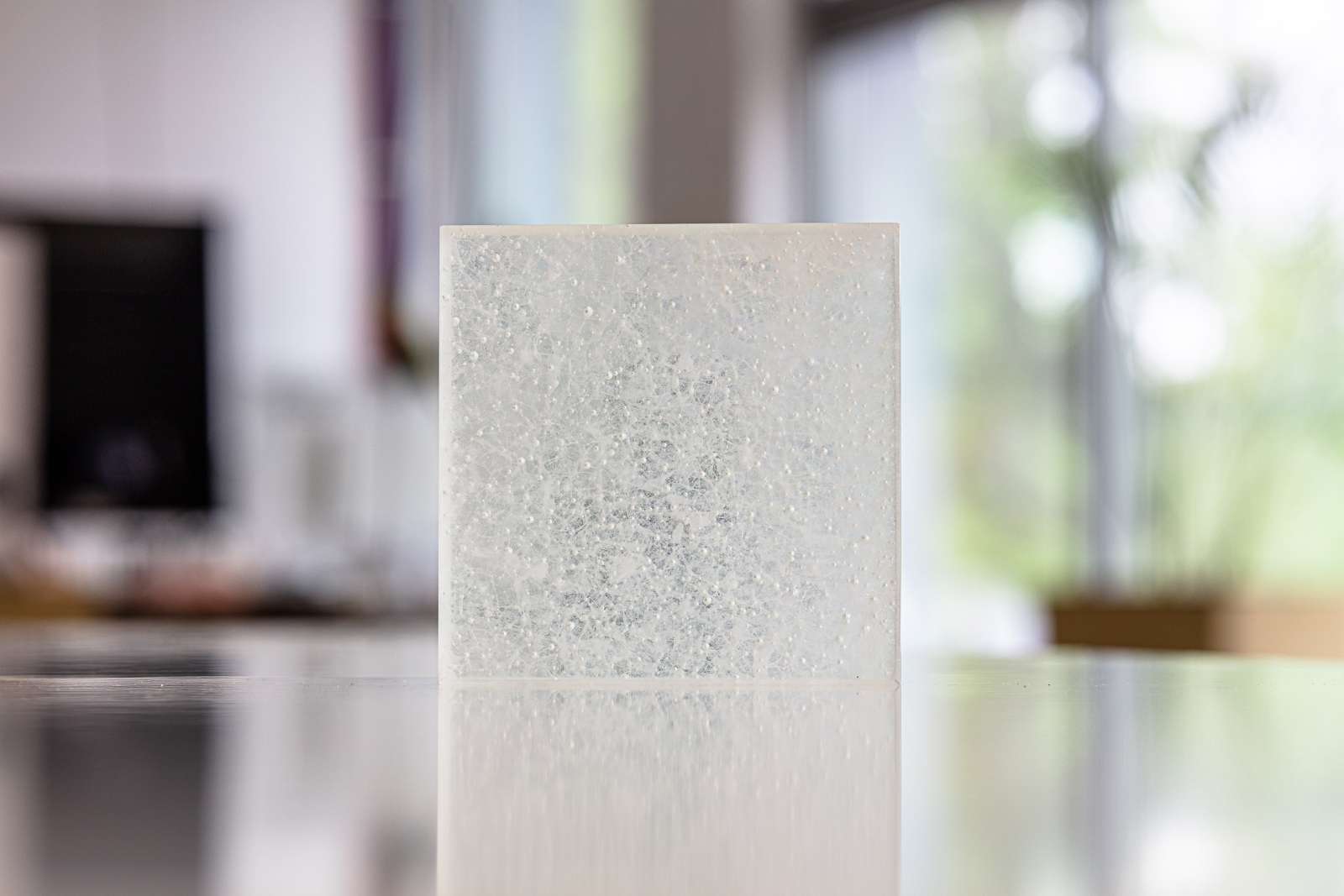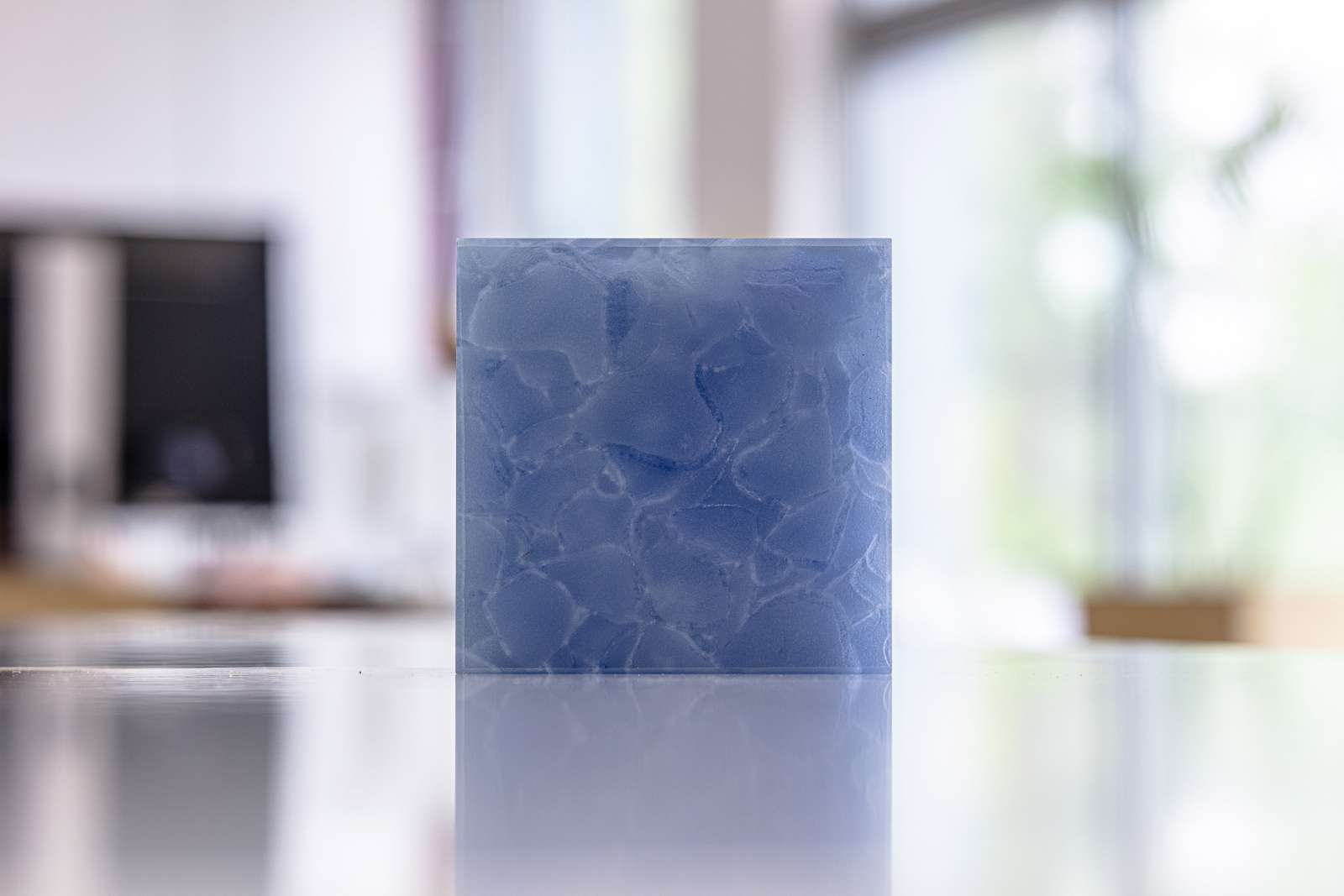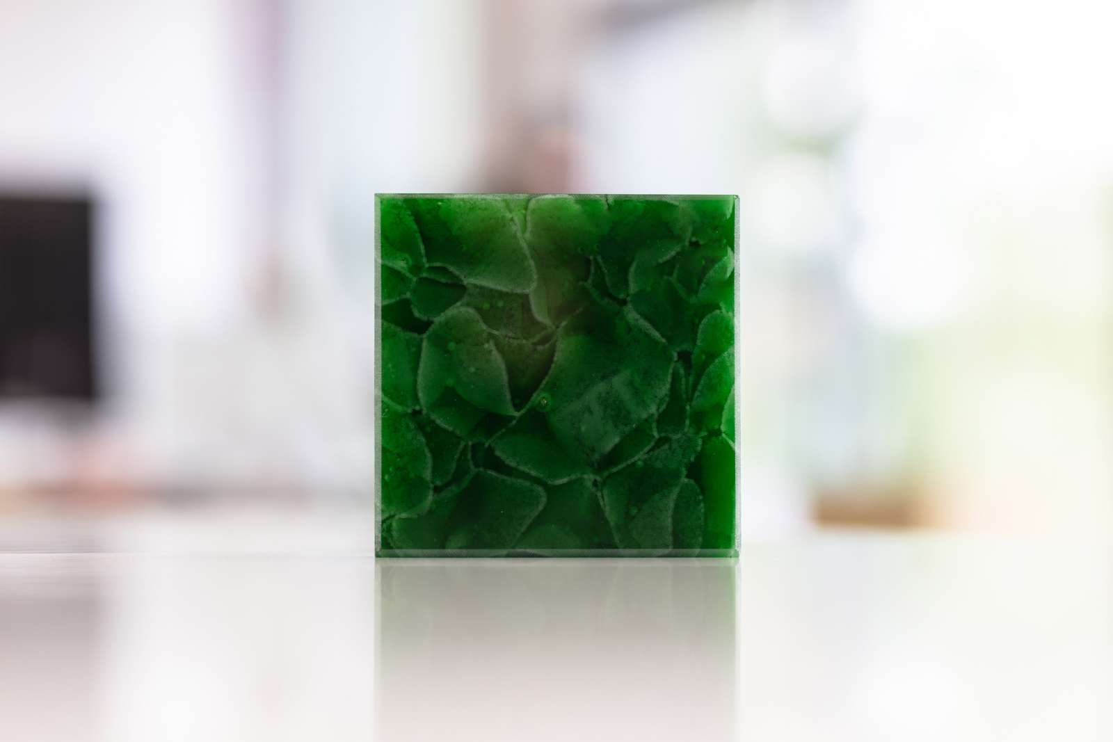 Our advanced technology means we can waterjet cut this in different shapes creating stunning recycled glass awards. We plan to introduce some standard shapes in the future as we continue to develop the possibilities with this material.