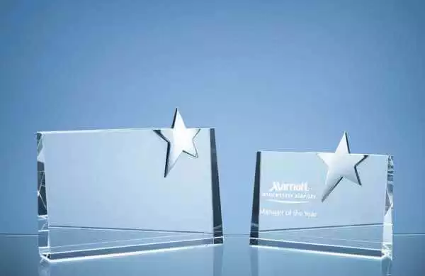 15cm Optical Crystal Horizontal Rectangle with Silver Star